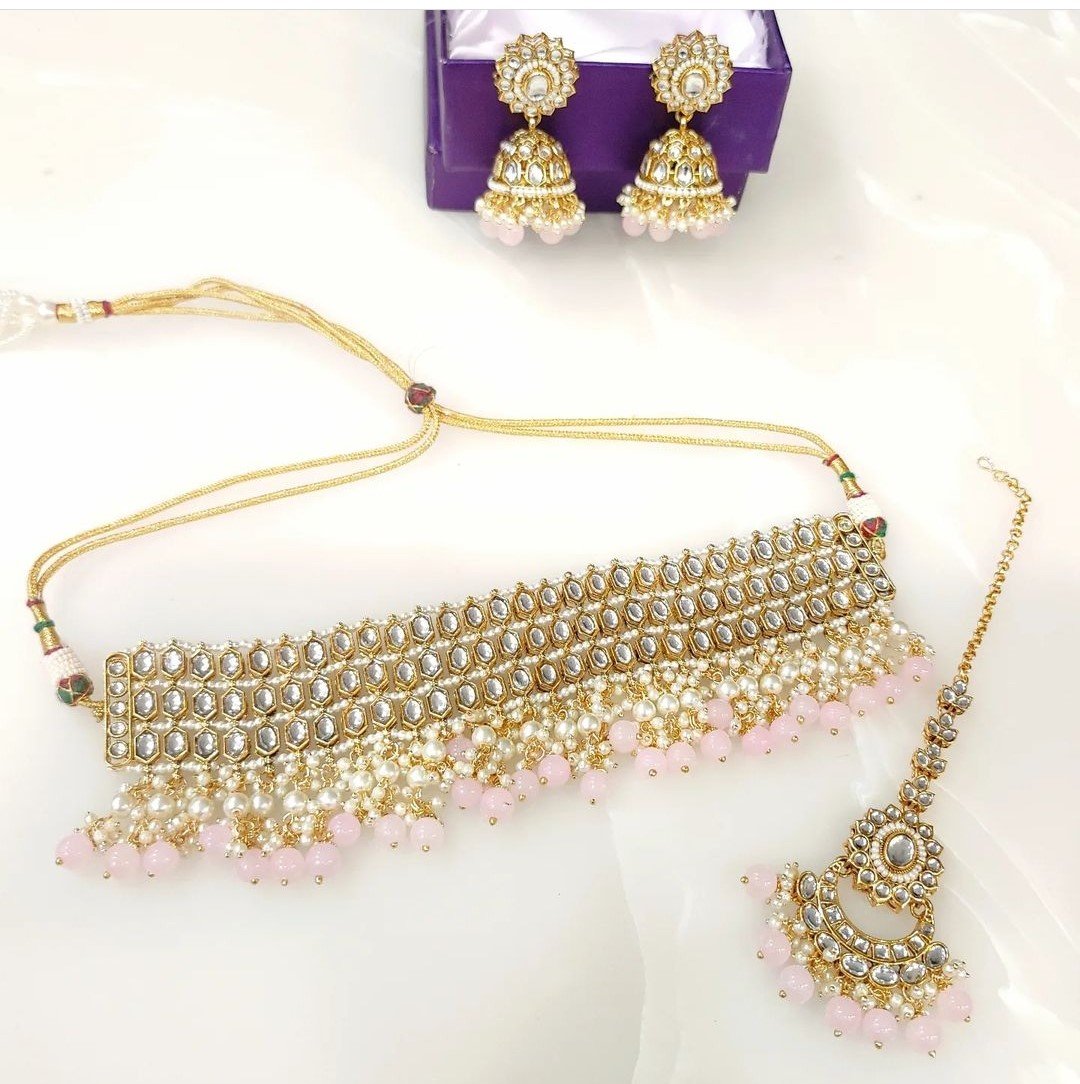Package Content : 1 Necklace with a pair of earrings and a maangtika