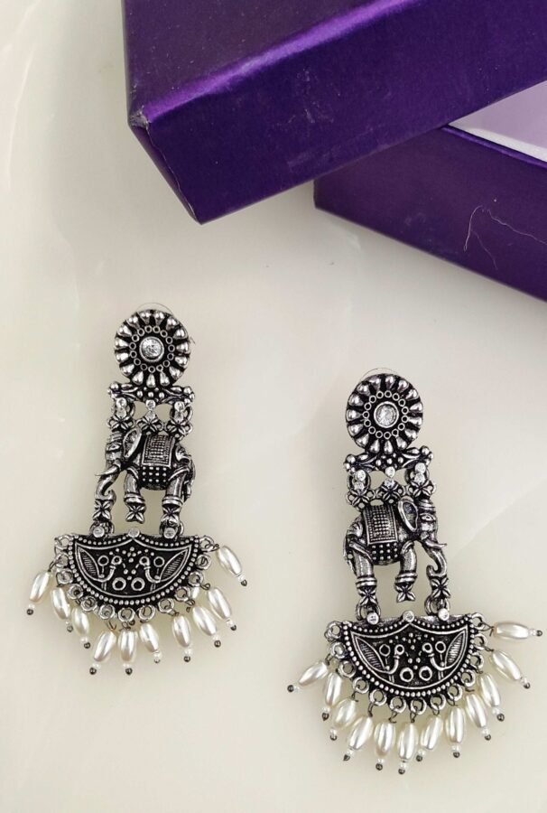 A dramatic pair of oversized danglers is an affair that never really ends. Irresistible, statement making and light weight with impactful aesthetics. Delicate filigree motif forms are the highlight of the piece with the pearl hangings. This statement earrings that spell majestic and luxurious.