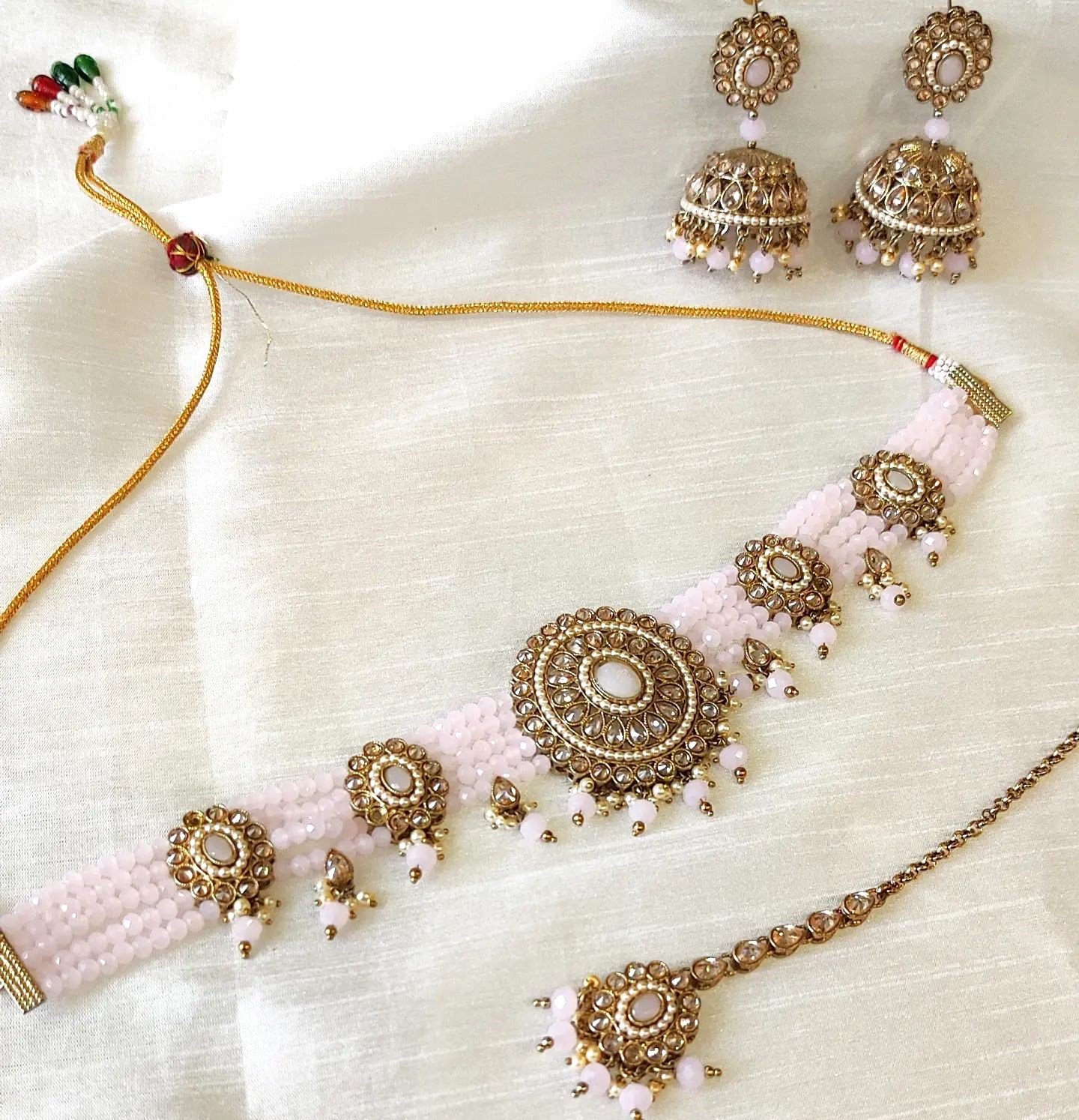 Package Content : 1 Choker with a pair of earrings and maangtika