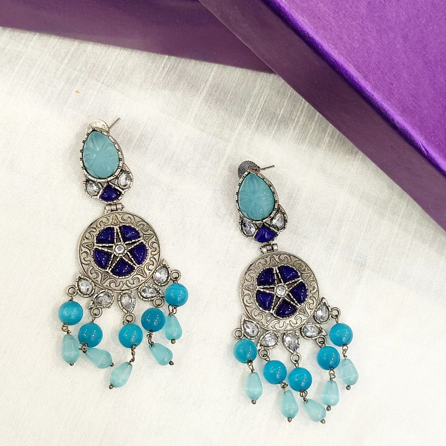A gorgeous pair of danglers that come with a promise to brighten up and bring focus to your face. This is such a striking pair that you wouldn’t mind going without makeup too.