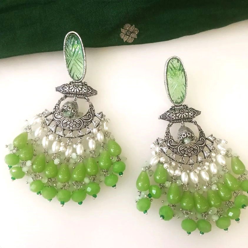 This light weight pair of earrings are crafted with filigree work mixed with stones. Bits of pearls with colorful stones as a playfully drop, this one is a statement maker, you’d use to dress up just about any outfit.