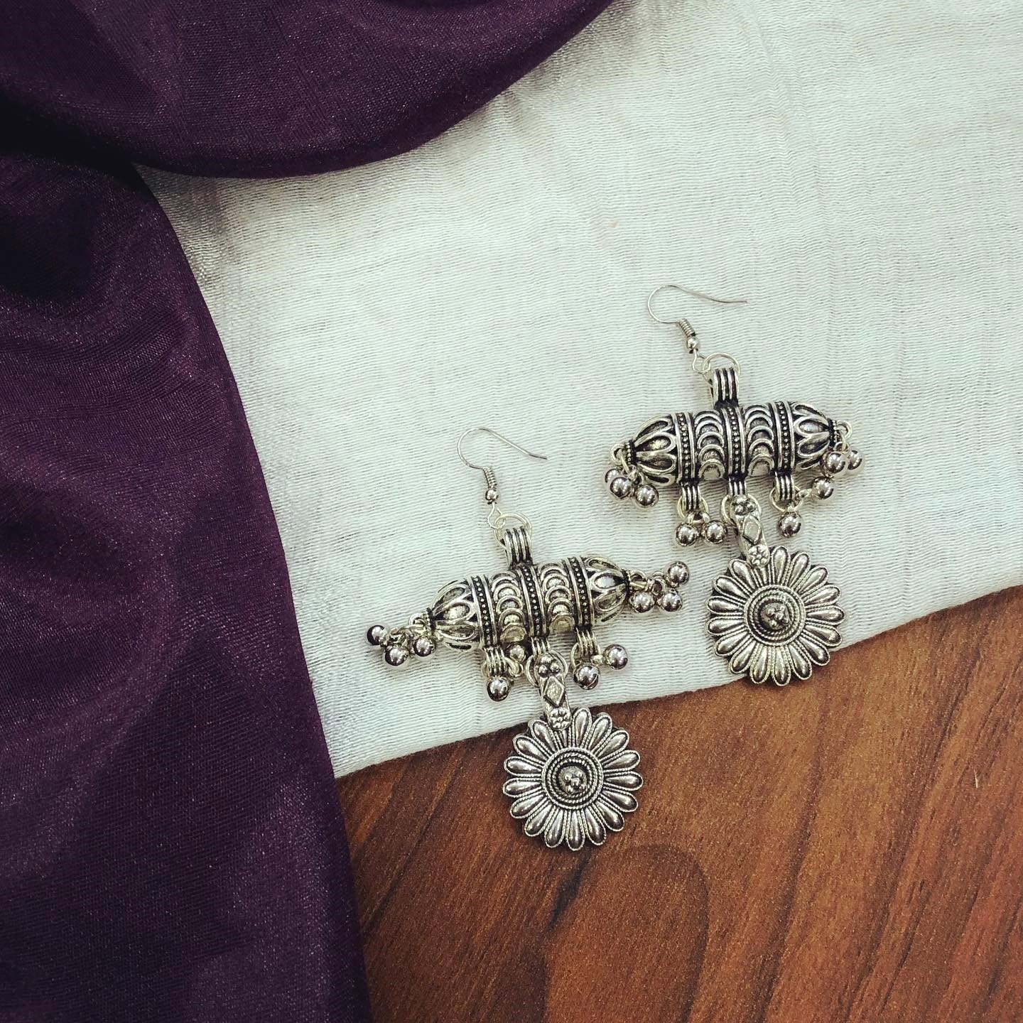 A sheer symbol of exquisite beauty and elegance! Our German Silver Oxidized earrings can uplift all your daily wear outfits.